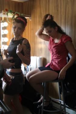 Donna Williams (seated - REBECCA) and Kat Francis (Asst. Makeup/Hair) |