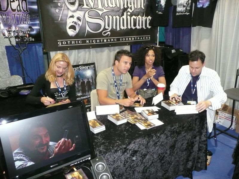 Meredith Beardmore (ANGELA), Andrew Divoff (VELLICH), and CB Spencer (JILL) at Girls & Corpses Magazine signing - Burbank, CA |